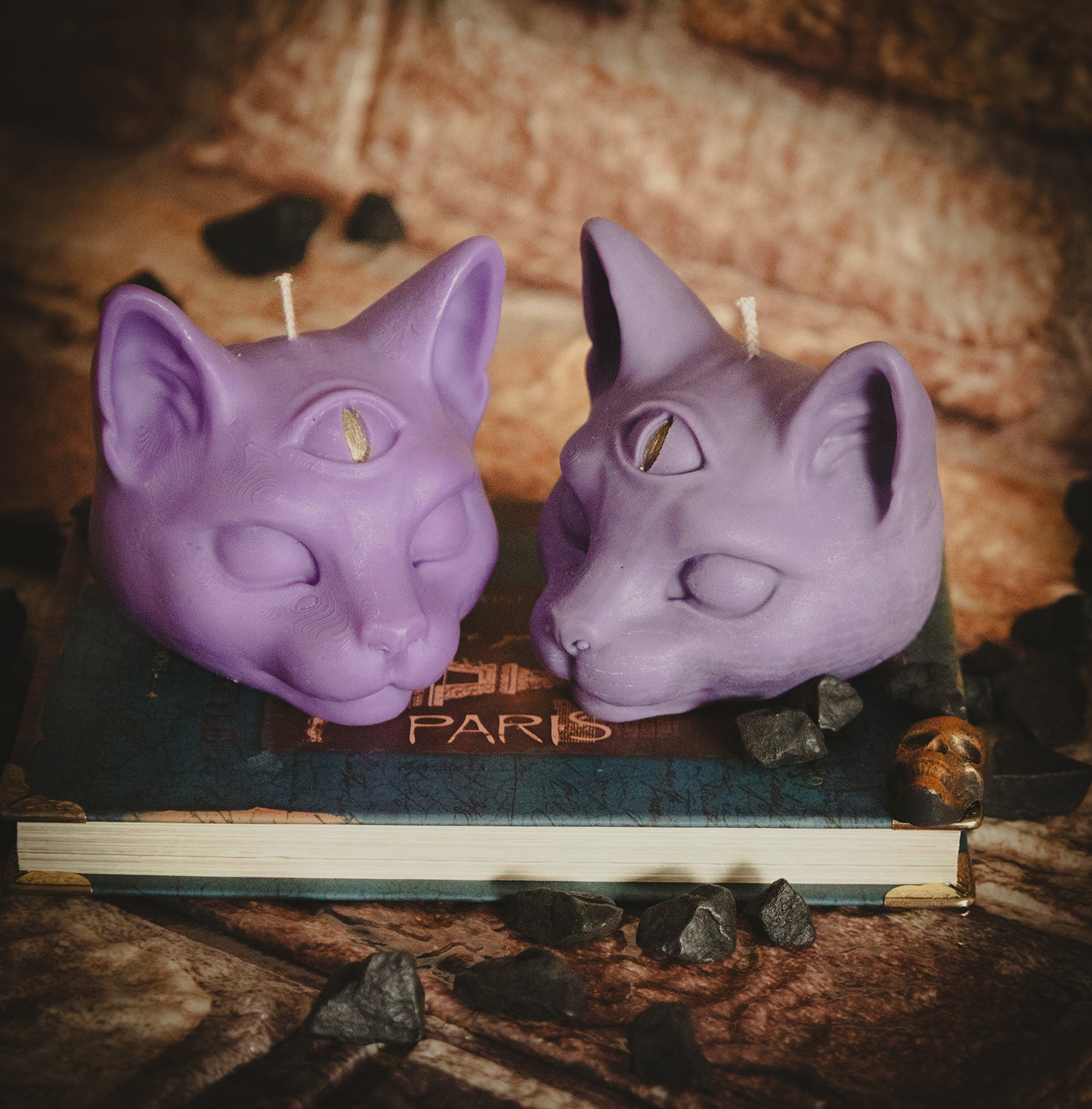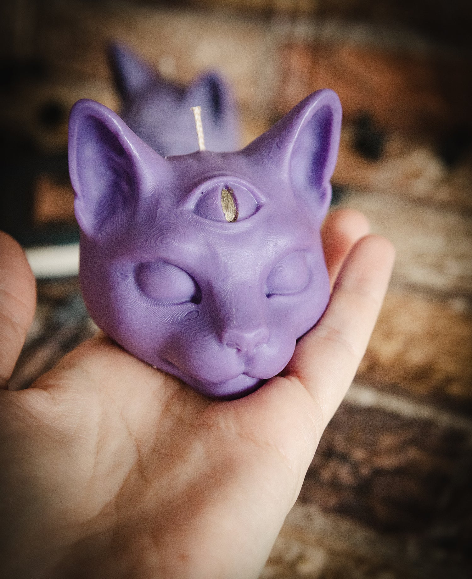 Lumanare din ceara naturala de soia, sculptata in forma unei pisici. Arde curat, fara fum, doar cu personalitate. Cutie decorativa inclusa, perfecta pentru cadou sau decoratie de Halloween