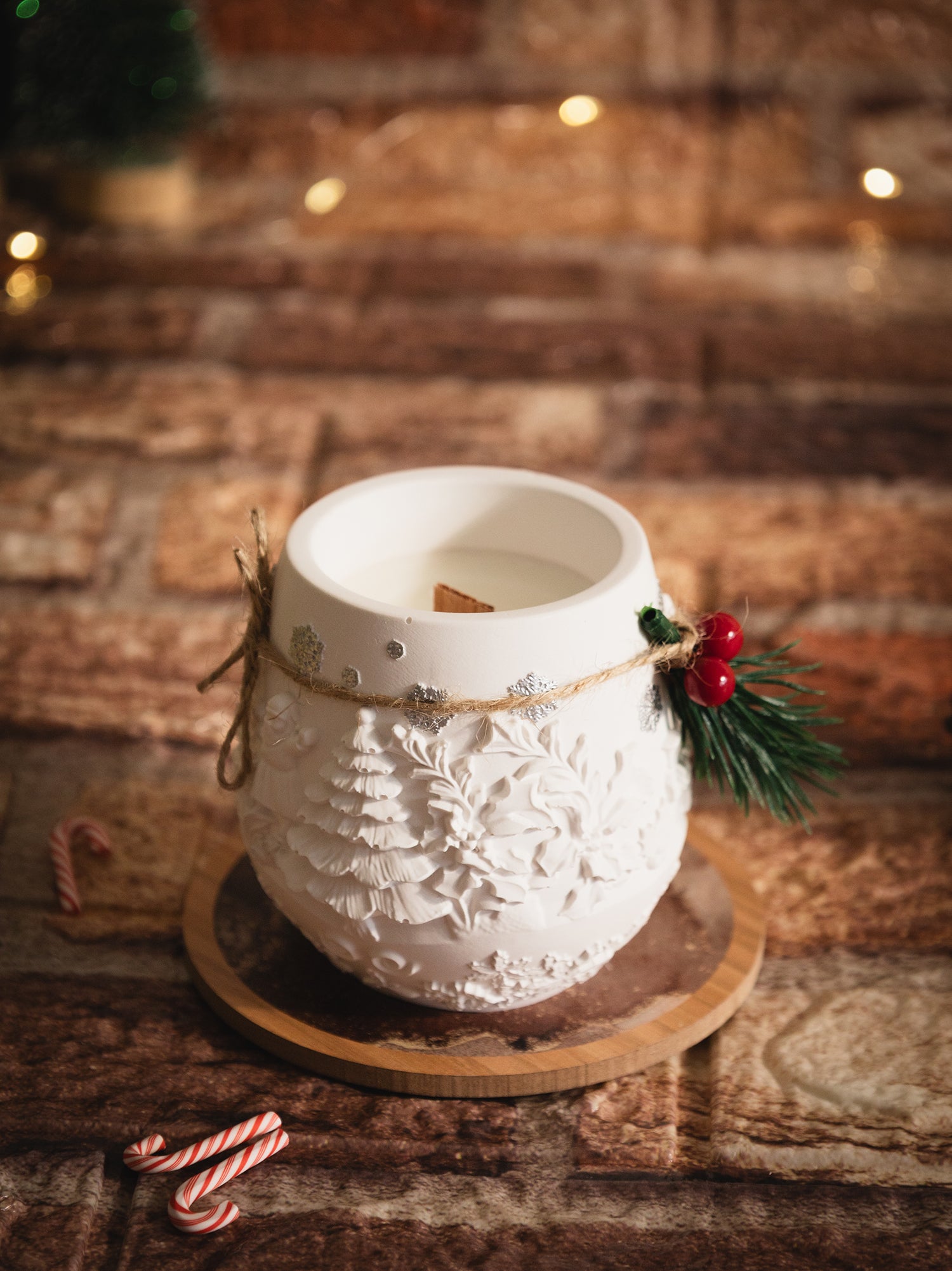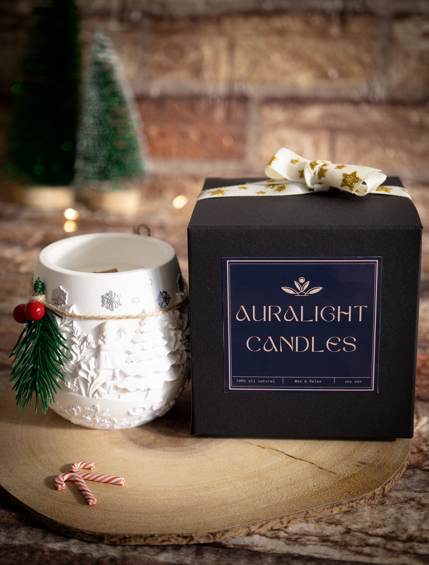 Turnata manual intr-un recipient creat cu grija, aceasta lumanare prinde viata odata cu primul trosnet al fitilului de lemn. Aroma de pin aduce cu ea linistea padurii inzapezite si caldura unei seri de iarna.
